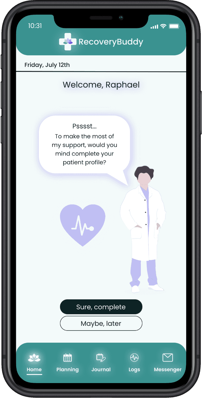 Creating a full mHealth application MVP hifi prototype with a disruptive concept, a strategic branding, and some feature requirements.
