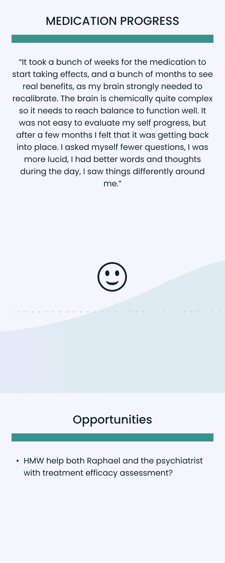 By making a situational analysis of existing resources prior my market research, I was able to validate some assumptions about medication weaning and prescription changes correlated with long-term illnesses.